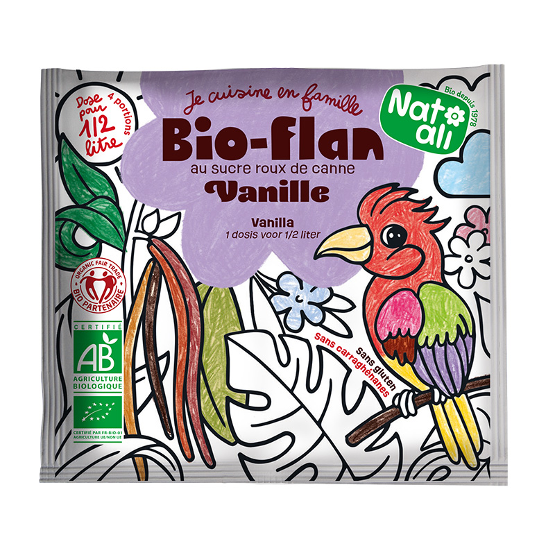 Réf. : 615011Tous en cuisine avec les Bio-flan. Transformez la préparation de délicieux entremets en un moment ludique et créatif avec vos enfants ! Facile à réaliser, les bio-flan offrent une expérience culinaire amusante, tout en apprenant à préparer des desserts sains et gourmands. Et après la préparation, les sachets se transforment en coloriage, pour encore plus de fun ! Un vrai plaisir à partager, pour des souvenirs sucrés et pleins de rires !